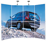 Expand JokerExpand Joker puede colocarse en casi todas las posiciones, formando una pantalla de imagen, una columna de exhibición triangular o cuadrada, o un mostrador de productos. La estructura está compuesta de modulos de 70x100 ó 50x70 cm. y pueden juntarse todos los módulos que quieras. Se entrega completo en una bolsa de nylon forrada, de forma que es muy fácil de transportar.