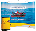 Expand BigFabricMultiplica tu capacidad de marketing con esta estructura que es fácil de usar y atrae la atención de la gente. Es el sistema perfecto cuando tienes espacio para todo tipo de presentación y marketing. La imagen se imprime en un material especial que se estira para formar una superficie completamente lisa. El material impreso esta fijado a la estructura, incluso cuando el display es plegado y guardado en la bolsa. Solo se tarda un minuto en montarse. La imagen tiene una superficie de más de cinco metros cuadrados. Se entrega completo en una bolsa de nylon forrada, de forma que es muy fácil de transportar.